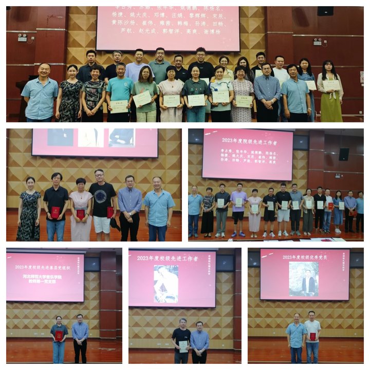 会上,美高梅 领导班子成员依次为2023年度先进基层党组织,校级和院级优秀党员以及校级、院级先进工作者,师德师风考核优秀教师颁发获奖证书并合影留念。