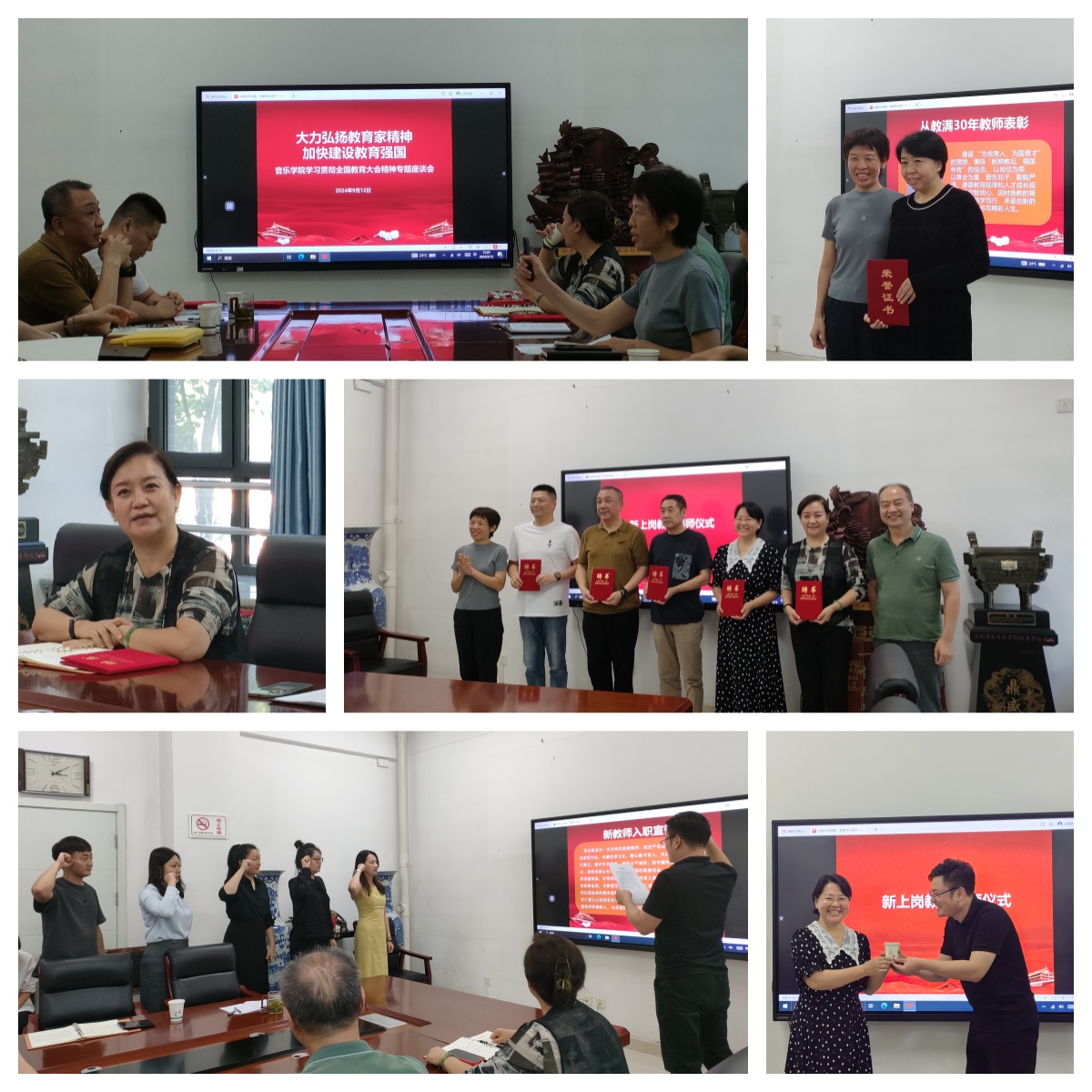 9月12日下午,美高梅 “从教30年表彰、新教师入职拜师仪式暨学习全国教育大会精神专题座谈会”在106会议室举行。