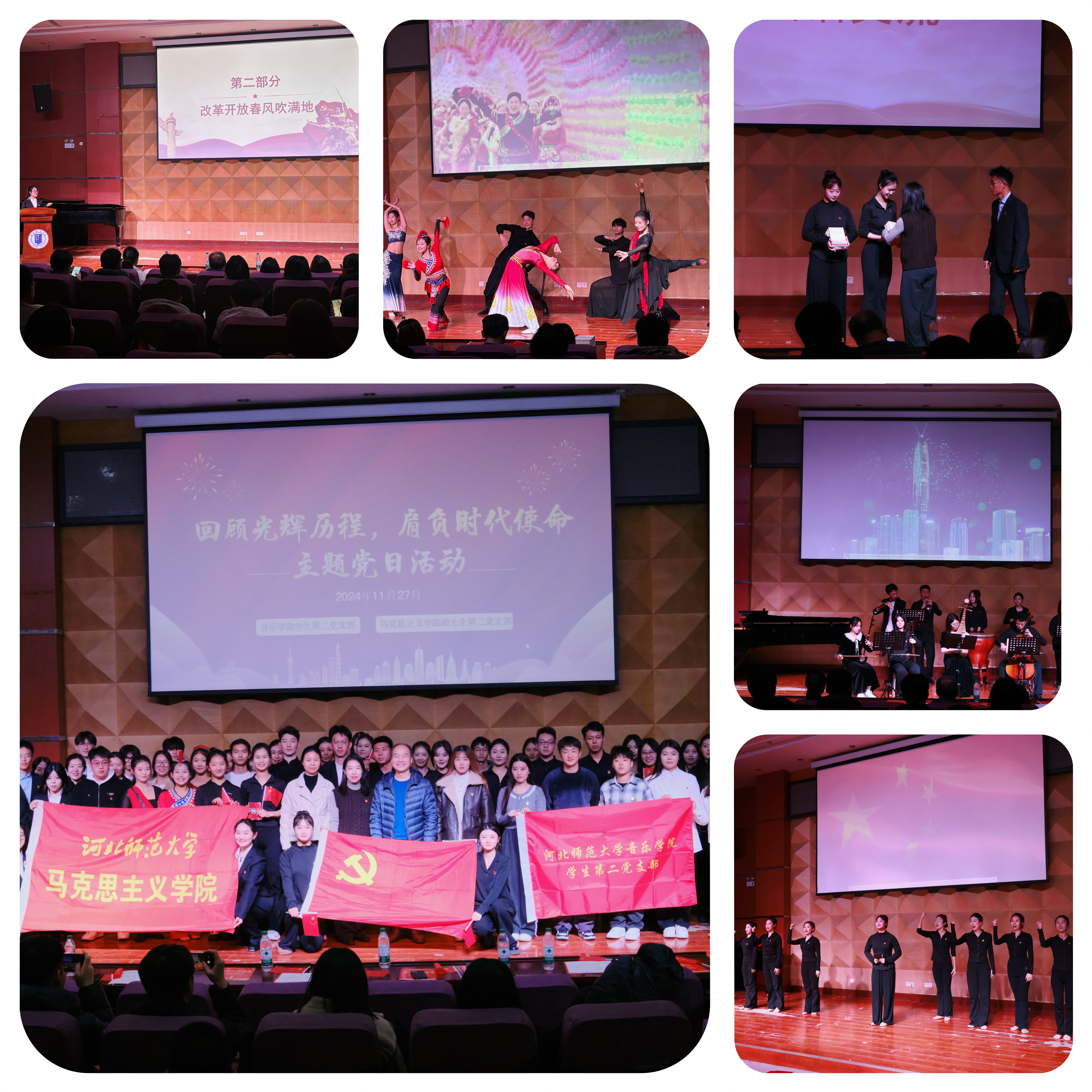 11月27日,美高梅 学生第二党支部和马克思主义美高梅 硕士生第二党支部联合举办的“回顾光辉历程,肩负时代使命”主题党日活动在美高梅 小剧场举行。