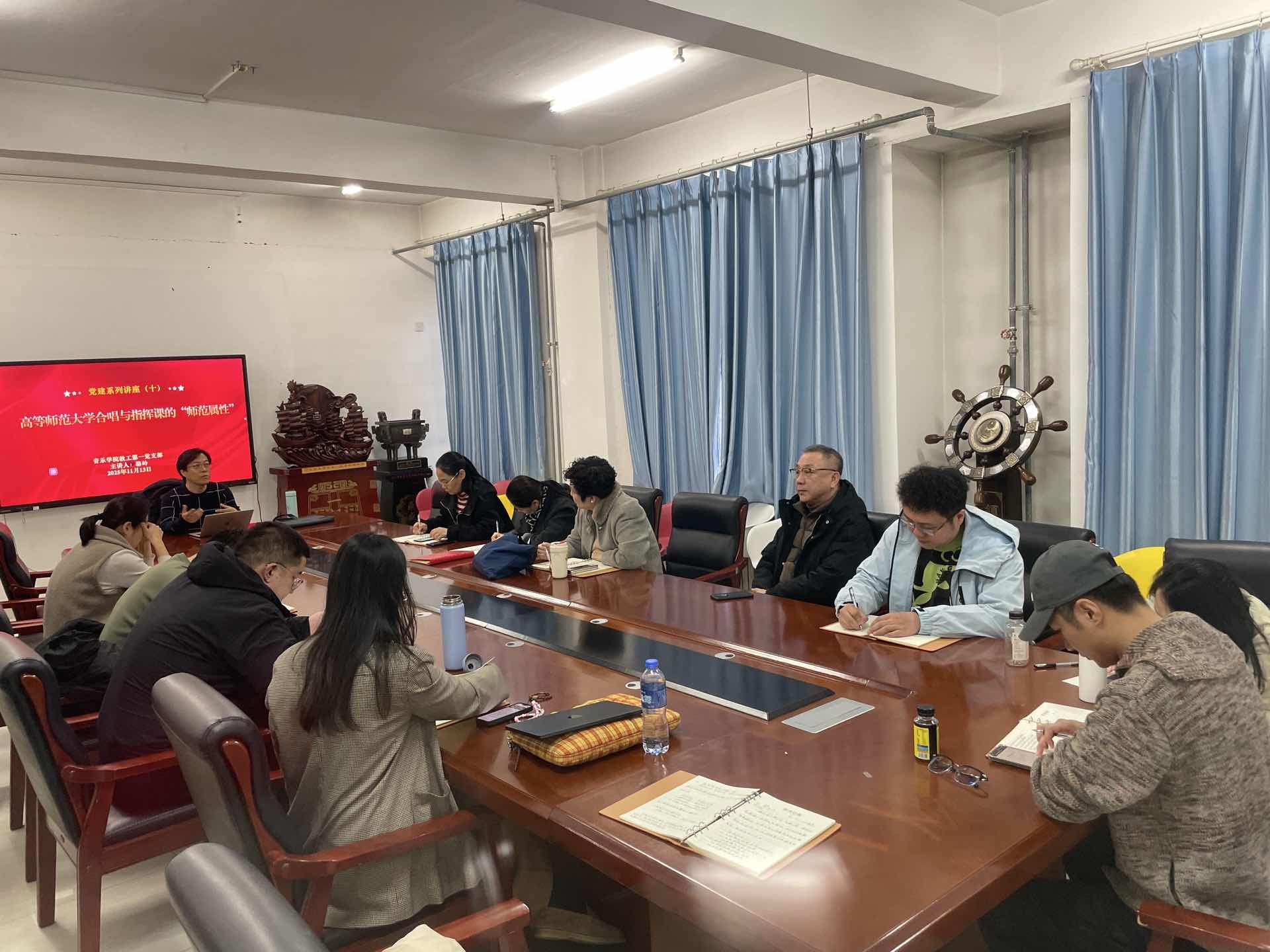 11月13日,美高梅 教工第一党支部“之悟讲堂”系列党建活动在美高梅 106会议举行。骆岭副教授以《高等师范院校合唱与指挥课的“师范属性”》为题,分享自己“合唱与指挥”课堂教学的所思所悟。